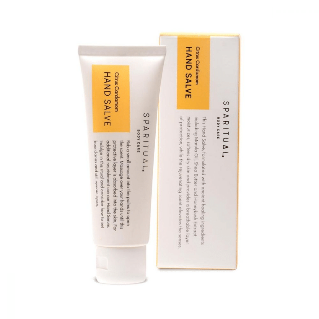 This SpaRitual Citrus Cardamom Hand Salve is formulated with ancient healing ingredients including Marula Oil, Shea Butter, and Honeybush Extract moisturizes, softens dry skin and provides a breathable layer of protection, while the rejuvenating scent elevates the senses.