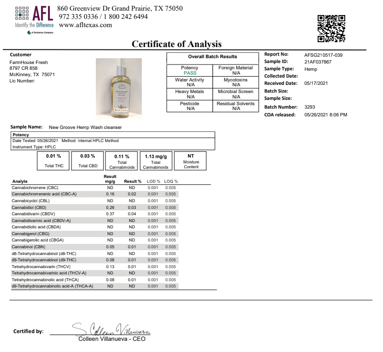 Why you'll love it: New Groove® Hemp Wash Gel Cleanser is made with three soothing botanicals: calming cannabinoid-rich full spectrum Hi-Bio® hemp oil, FHF farmer grown micro kale extract, and green tea extract.