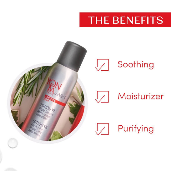 The YK Lotion for Men is made for you! This invigorating men's toner, enriched with 9 essential oils, purifies, energizes, and soothes razor burn.